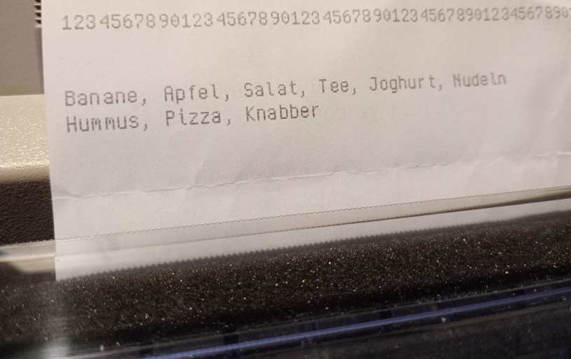 And, because I can, I use my own font for that, i.e. ImageMagick renders an image file and then a little tool converts that to ESC/P so I can dump it to /dev/usb/lp0.